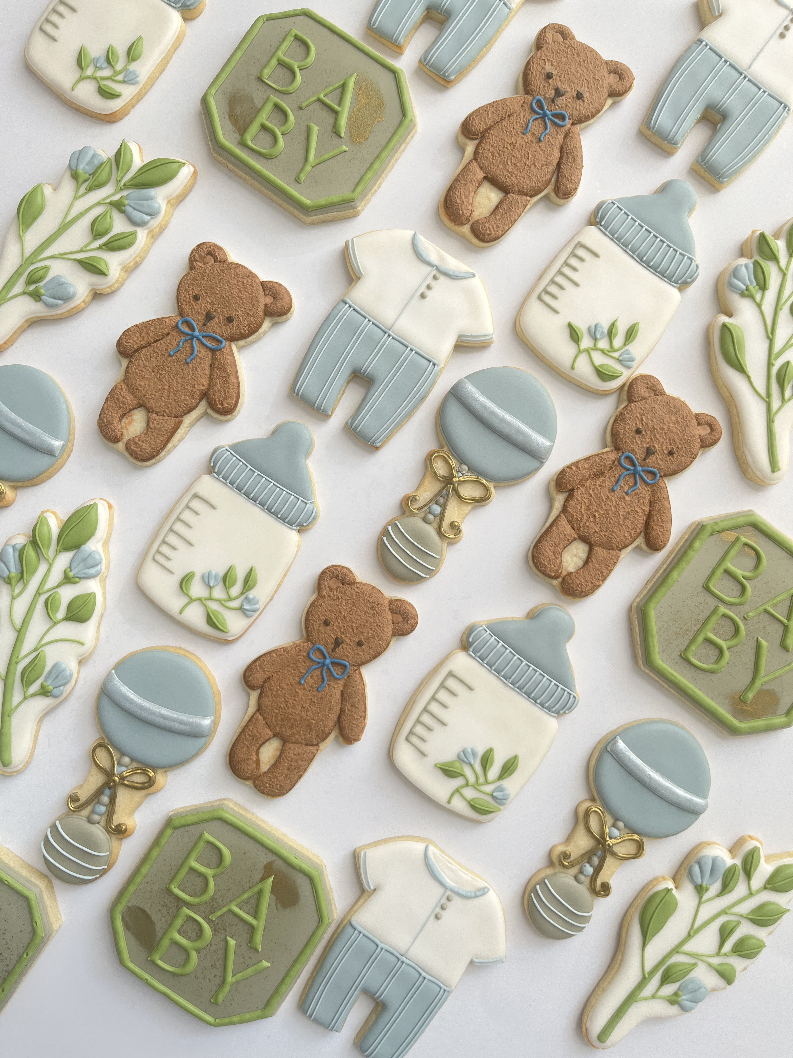 Thank you so much for your splendid work for these cookies. They were all very impressed with the looks and the taste of them. The future parents are also very happy and it made their celebration all the more special.
